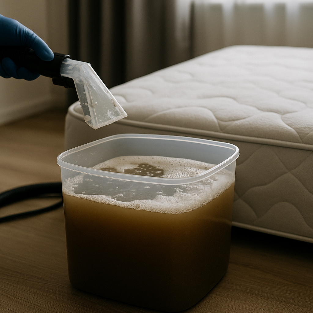 Cuando llegaron, colocaron una máquina que parecía salida de un laboratorio. Comenzaron a aplicar un producto sobre el colchón y luego activaron la extracción. Lo que ocurrió después la dejó muda: